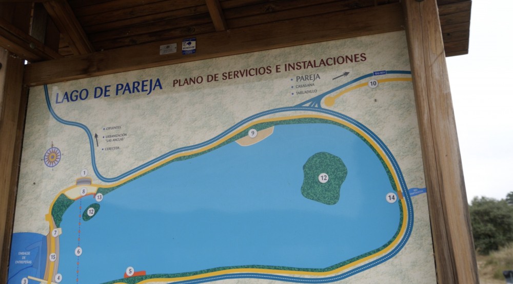 El visitante que llegue a Pareja encontrará como tarjeta de presentación este azud de Pareja, diseñado para el recreo y el esparcimiento, aprovechando su incomparable marco natural y las enormes posibilidades de ocio activo que aportan las aguas del Lago de Pareja, recogidas por su azud.
